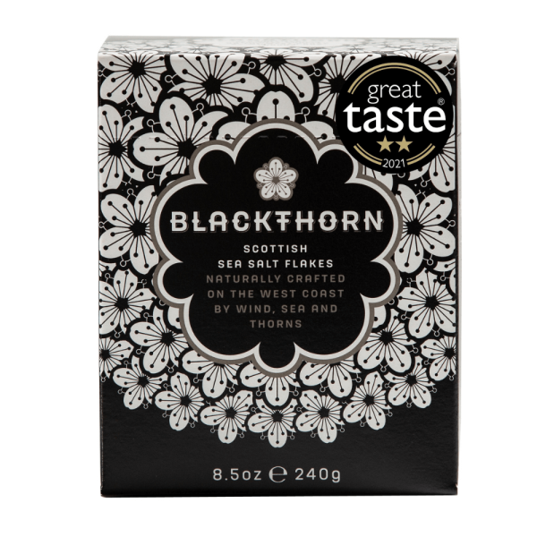 Delicious, natural, and sustainable Scottish Sea Salt flakes. Recommended with all food types, especially as a finishing salt to enhance the flavours. Made with wind, sea, and thorns on the West Coast of Scotland, Blackthorn Salt is the ultimate transformative ingredient for today’s kitchen. Poignant and bittersweet, with a taste echoing sea, Blackthorn Salt adds a rolling moreishness to any meal.