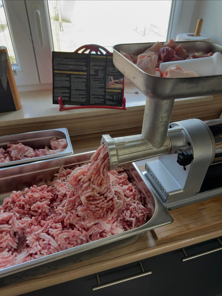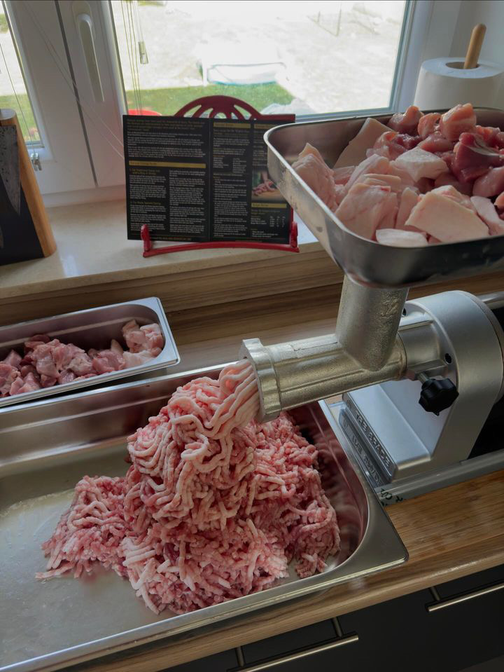 After making my first batch of sausages, I have since bought the Tre Spade TC-12 El/160 Electric Mincer, which has made life so much easier and will help speed up my butchery adventures.