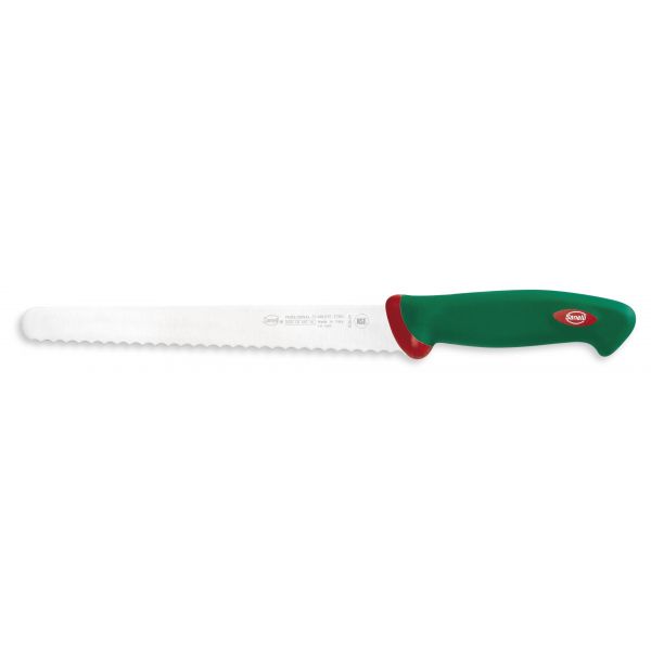 Premana Sanelli Professional Line Bread Knife with a 24cm/9½". This beautifully designed knife has a Semi-rigid serrated edge which makes it great for slicing bread, cakes and pizza.