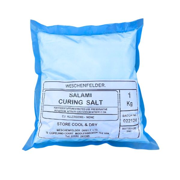 1kg bag of Weschenfelder Salami Curing Salts. Ideal for those with experience wanting to make medium to large quantities of charcuterie.