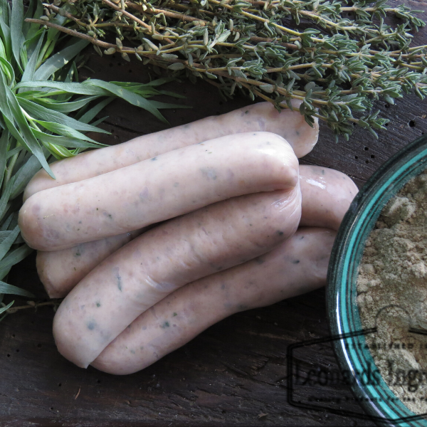 Make your own Chicken Sausages with this nice blend from Leonards. This is a delicate, herby mix that contains Black Pepper, Sage, thyme, and onion to compliment the lighter flavours of Chicken.