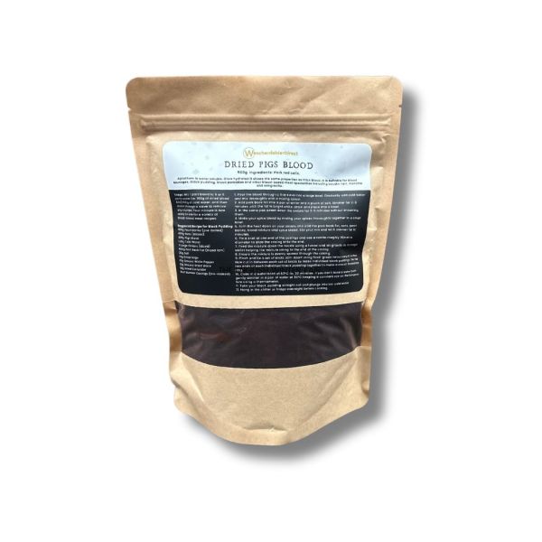 Dried Pigs Blood in an easy-to-use 500g pouch. This product can be used to try out all those recipes including black pudding, blood sausages, and boudin noir.