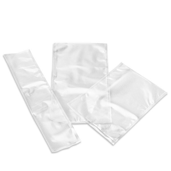 The embossing allows the vac machine to suck the air from the bag making them ideal for domestic-type small vacuum machines. Being of such high quality they also really enhance the product as well as preserve a huge range of food products.