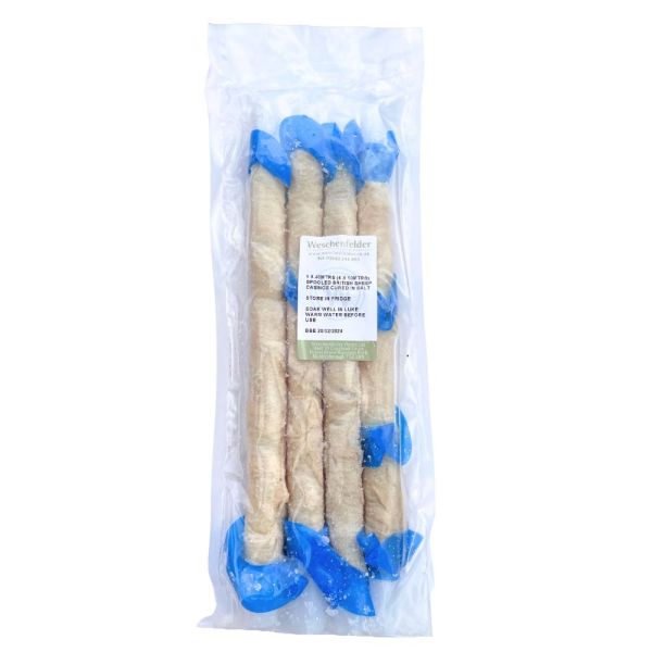 As with all natural casings, soak them in warm water (for at least a few hours or overnight in water), then slide them straight from the rod onto the nozzle of your sausage machine. No more fiddling around looking for the ends, the whole process takes seconds!