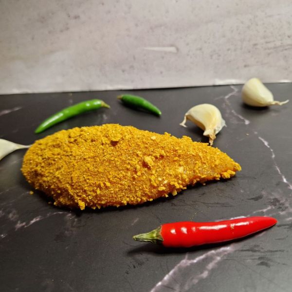 The main spices in this coater are chilli, coriander, cumin, fenugreek, pepper and turmeric. This combined with the sweetness of onions and garlic added in with citrus tones of orange oil means that this coater is brimming with flavour yet it has a balanced feel to it.