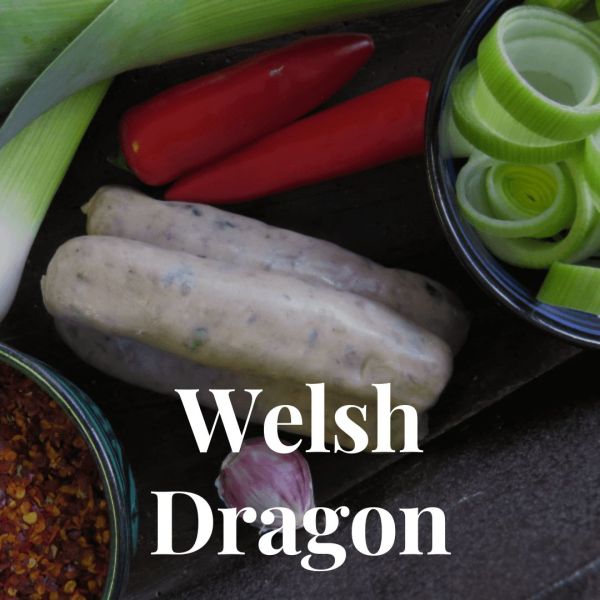 This is a cracker of a complete mix. Combining dried Welsh leeks with two different types of chillies, this mix will be sure to add a little fire as you bite into this sausage. Though not overly spicy this mix has a perfect balance between leaks and chillis and is the perfect way to heat up a mid-week meal. Though dragon meat is tasty we recommend pork mince as a substitute to make the Classic Welsh Sausage!