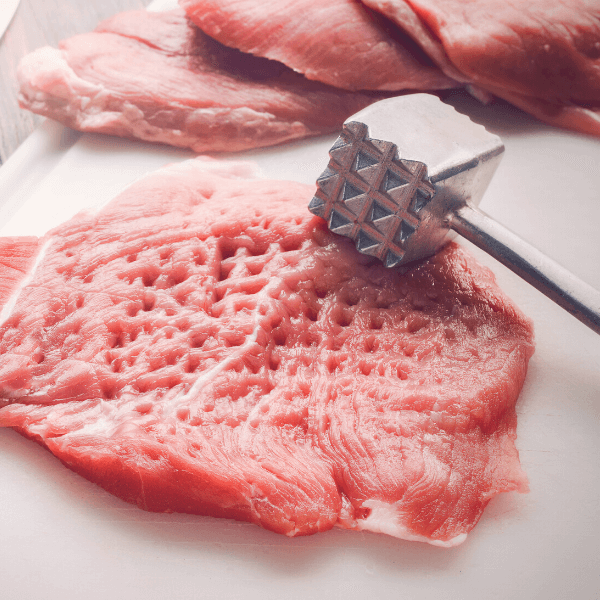 The tenderizer is used to make tough large chunks of meat lovely and tender making it wider and thinner in the process.