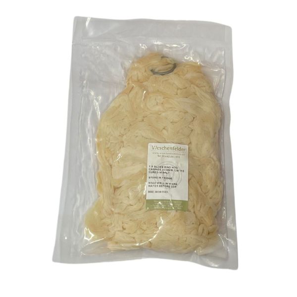 They come in packs of 72 metres and are cured in salt, tied with a silver ring and vac packed. This pack will make approximately 34kg (75lb) of sausages.