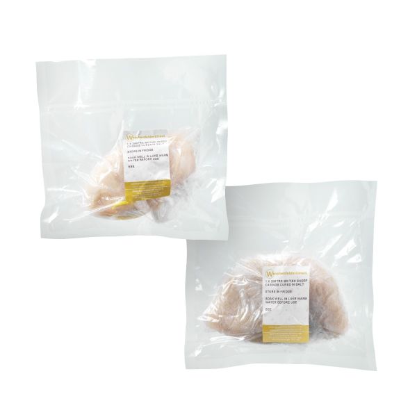 This pack is ideal for small users and comes sealed in two easy-to-use vac pouches cured in salt, with 40 meters (2 x 20 mtrs) which will fill out approx. 11-12kg (25lbs) of sausage.
